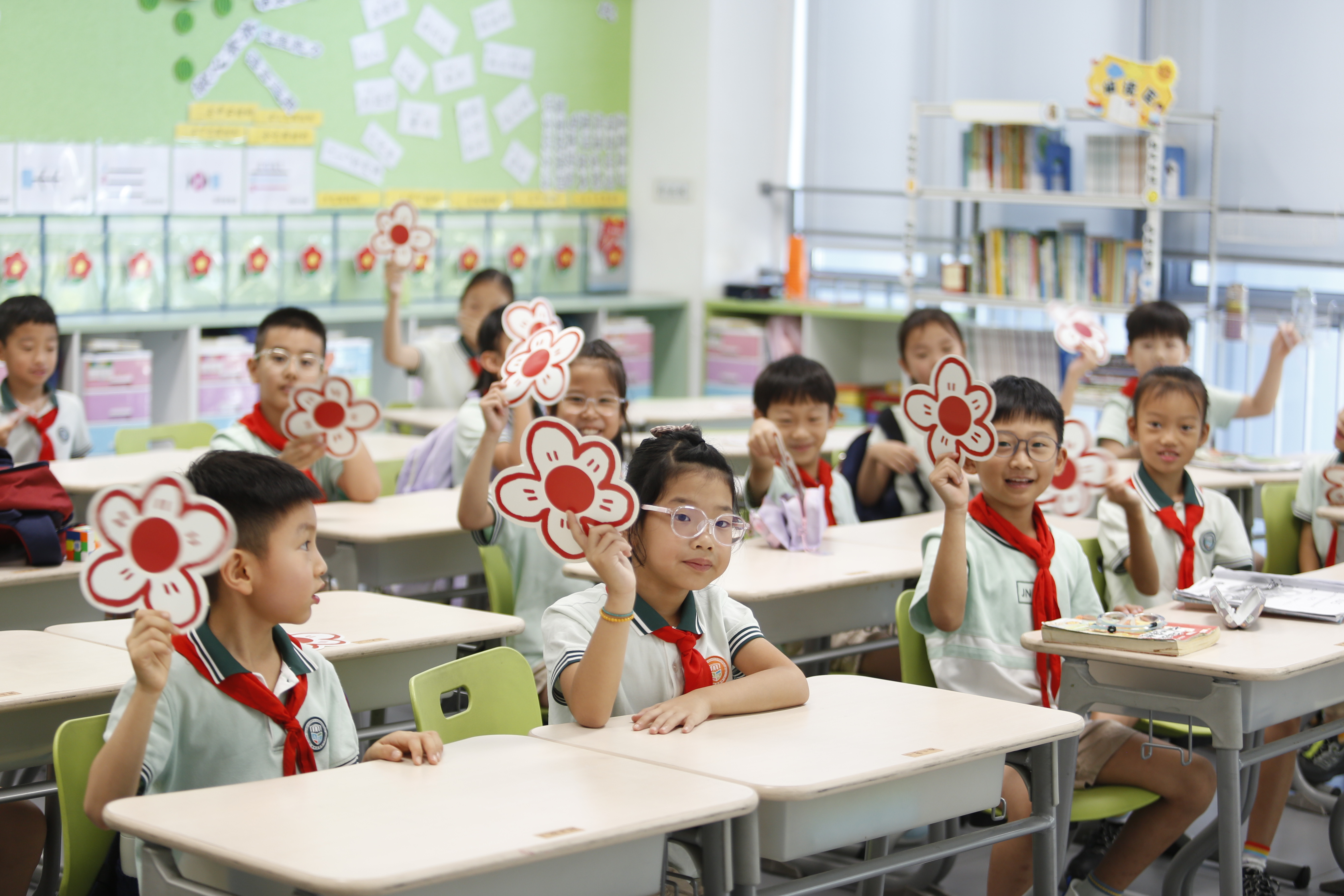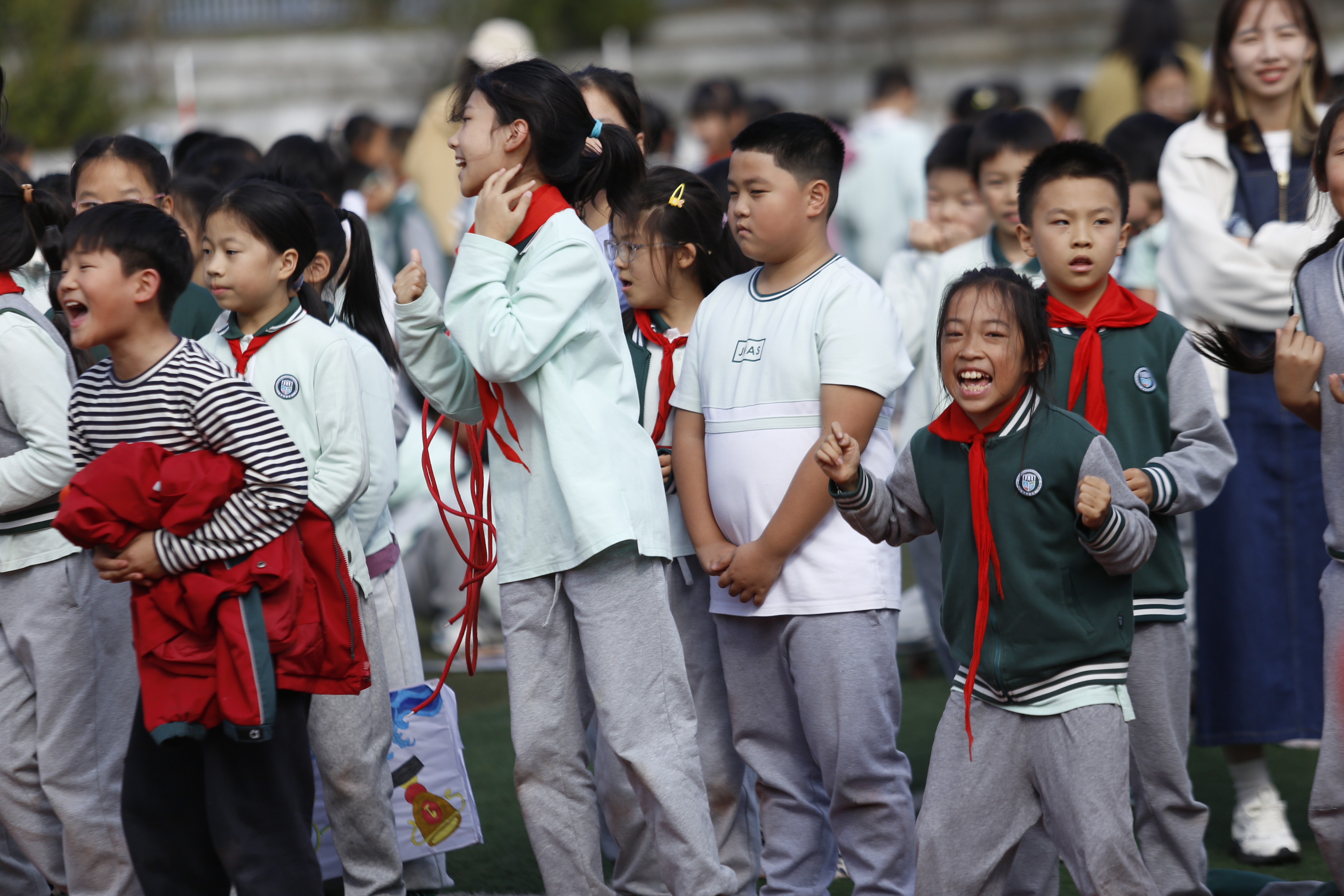 Grade 1 students attend the initiation ceremony of the Young Pioneers.