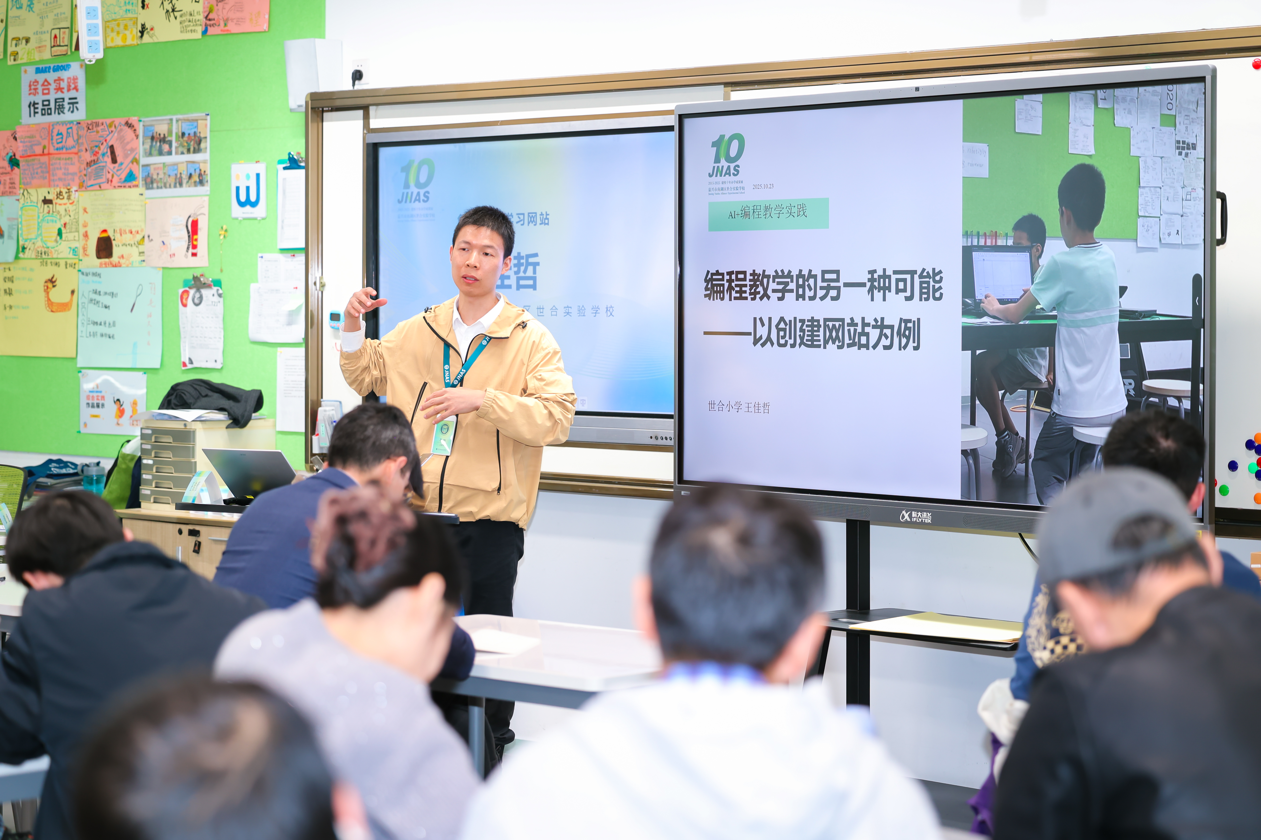 随后,我校信息科技教师王佳哲与张悦带来了“创建世合学习网站”与“AI身体乐器”两大项目的精彩介绍。