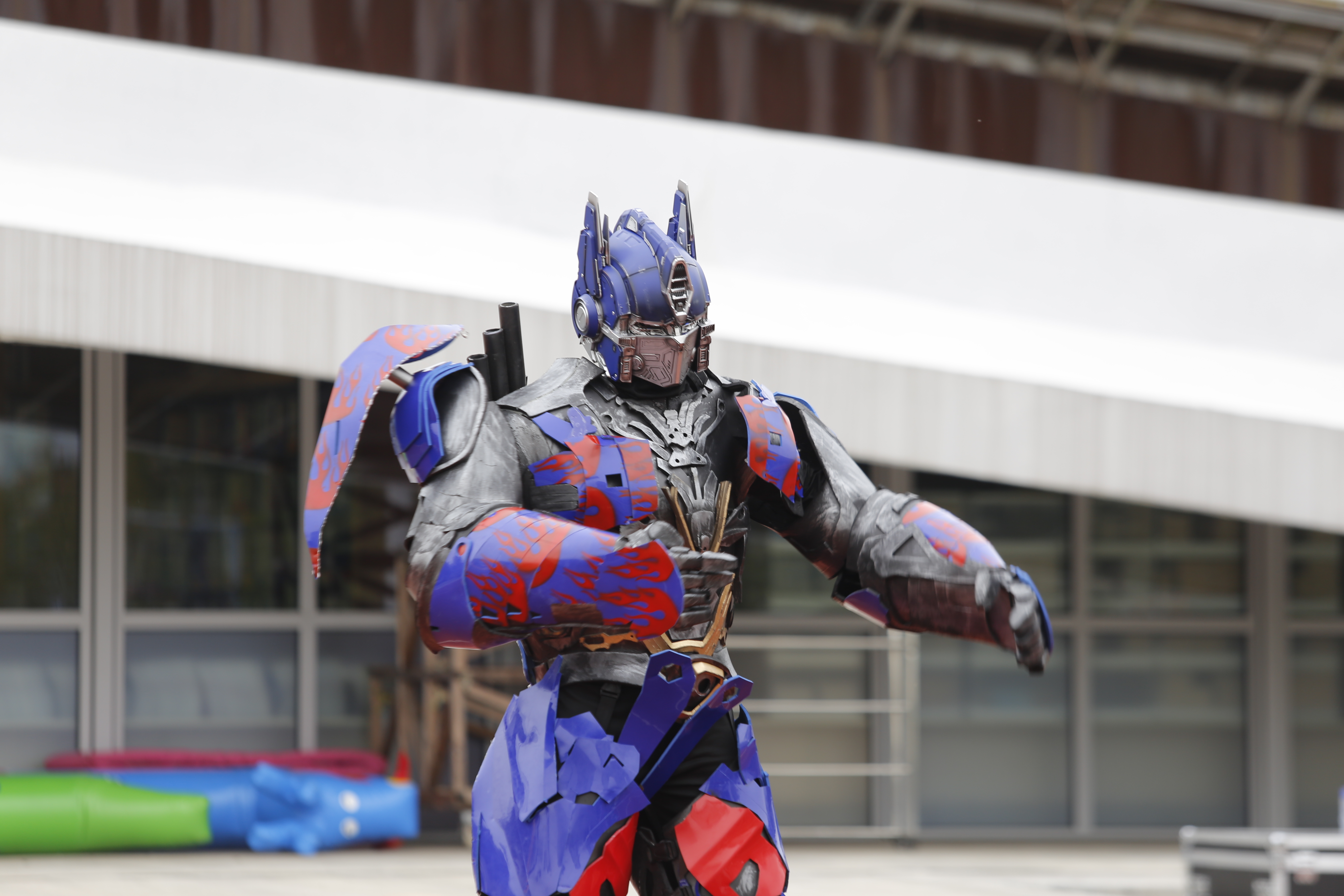 活动刚拉开序幕,两道 “巨无霸” 身影就赚足了眼球——擎天柱与大黄蜂机甲迈着酷炫的步伐登场,还跟着《少年》的旋律跳起了活力舞蹈!金属质感的外壳在阳光下闪闪发亮。台下的同学们瞬间沸腾,忍不住欢呼起来。