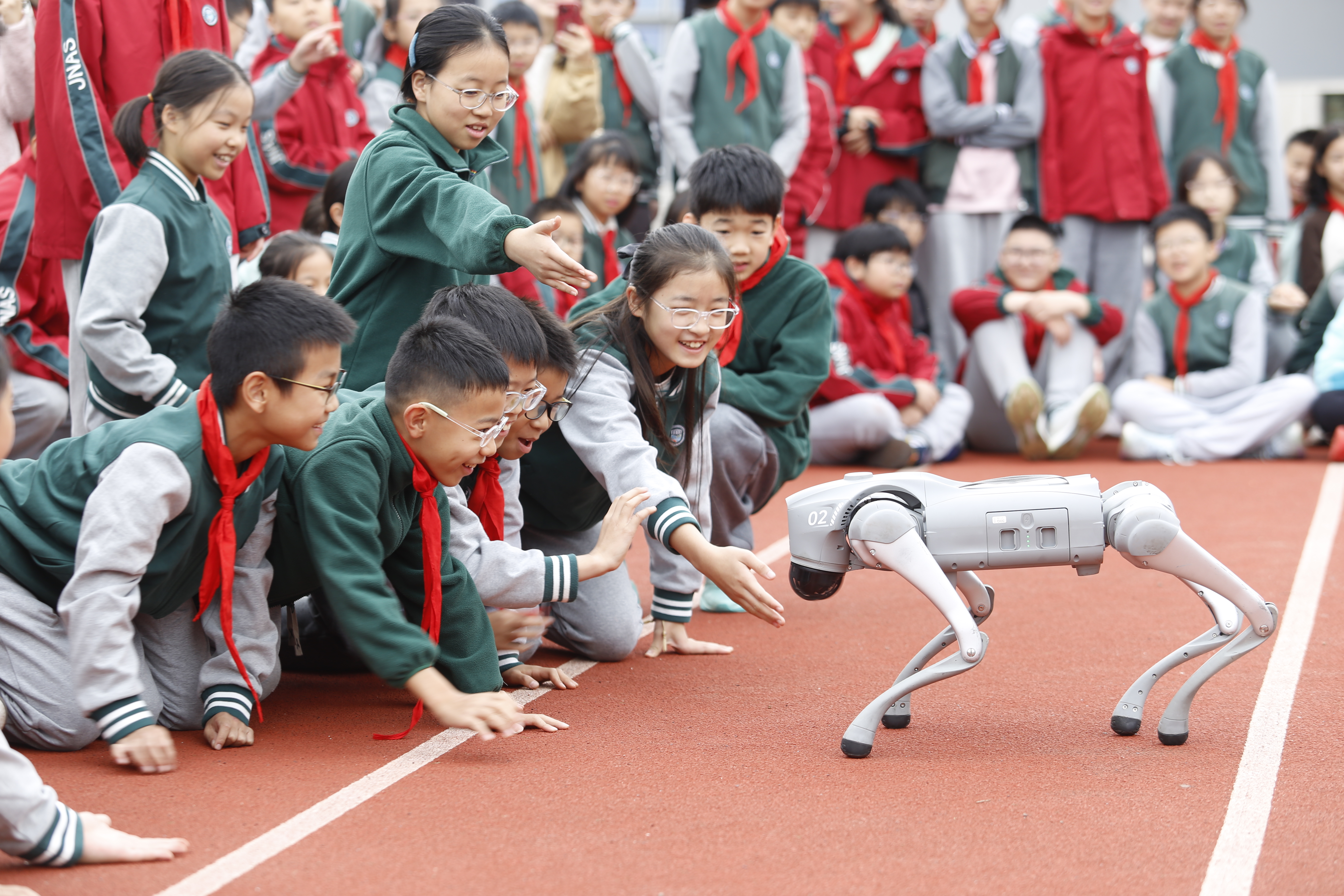 互动环节更有趣!机器狗和同学们亲密接触、巡场一周,还跳起了 “灵魂舞步”,扭腰、摆尾、踩着节奏晃悠,可爱模样让全场都跟着笑出了声,科学魔法秀也在这满是欢乐的氛围里圆满落幕。