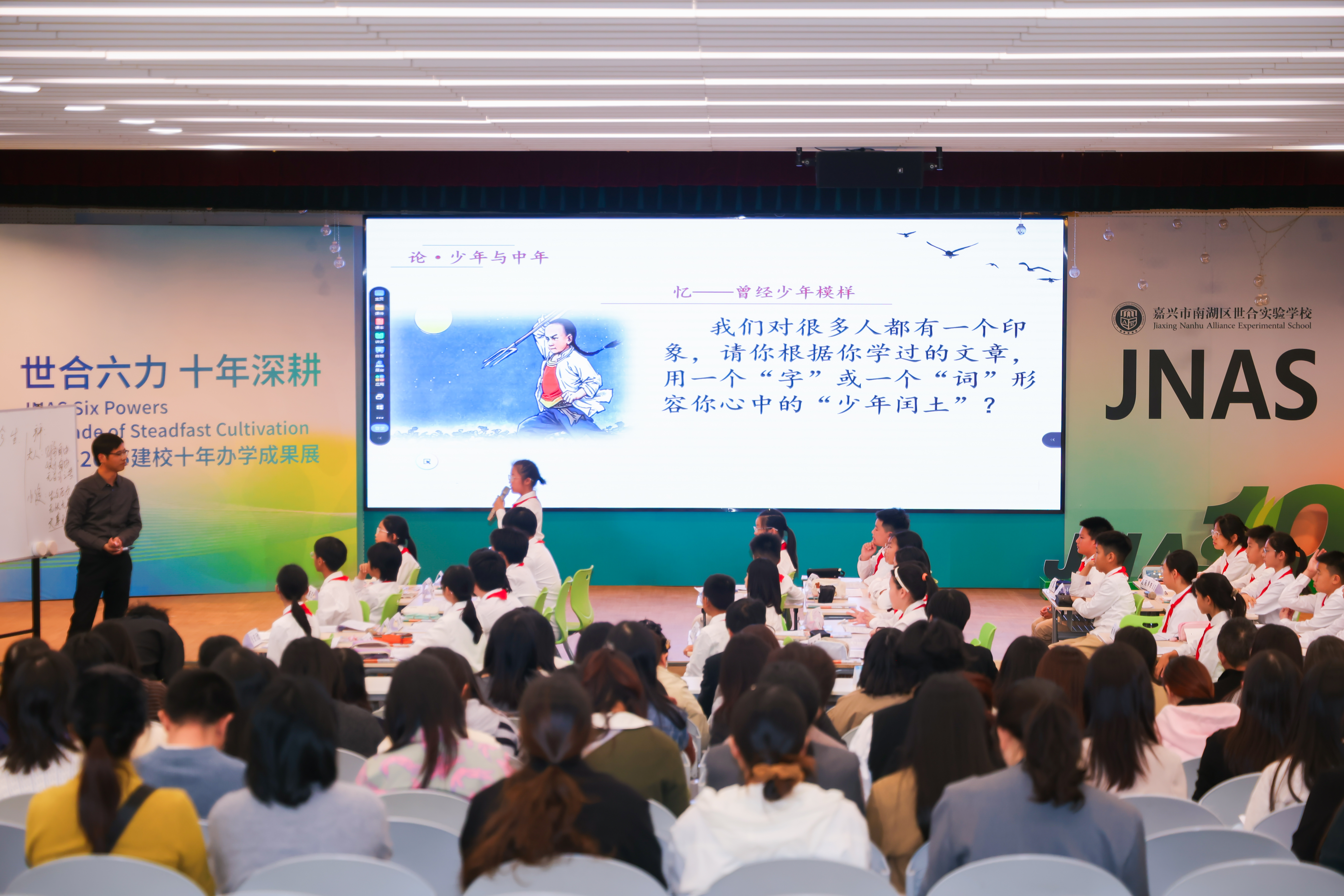 初中部周永旺老师携604班学生,以《闰土的前世今生》为镜,搭建起一座连接经典文本与青春思维的“跨时空对话场”。通过“辩·孩童与成人”“论·少年与中年”“思·小学与初中”三幕沉浸式课堂,让鲁迅笔下的闰土成为学生认知跃迁的“思辨脚手架”。