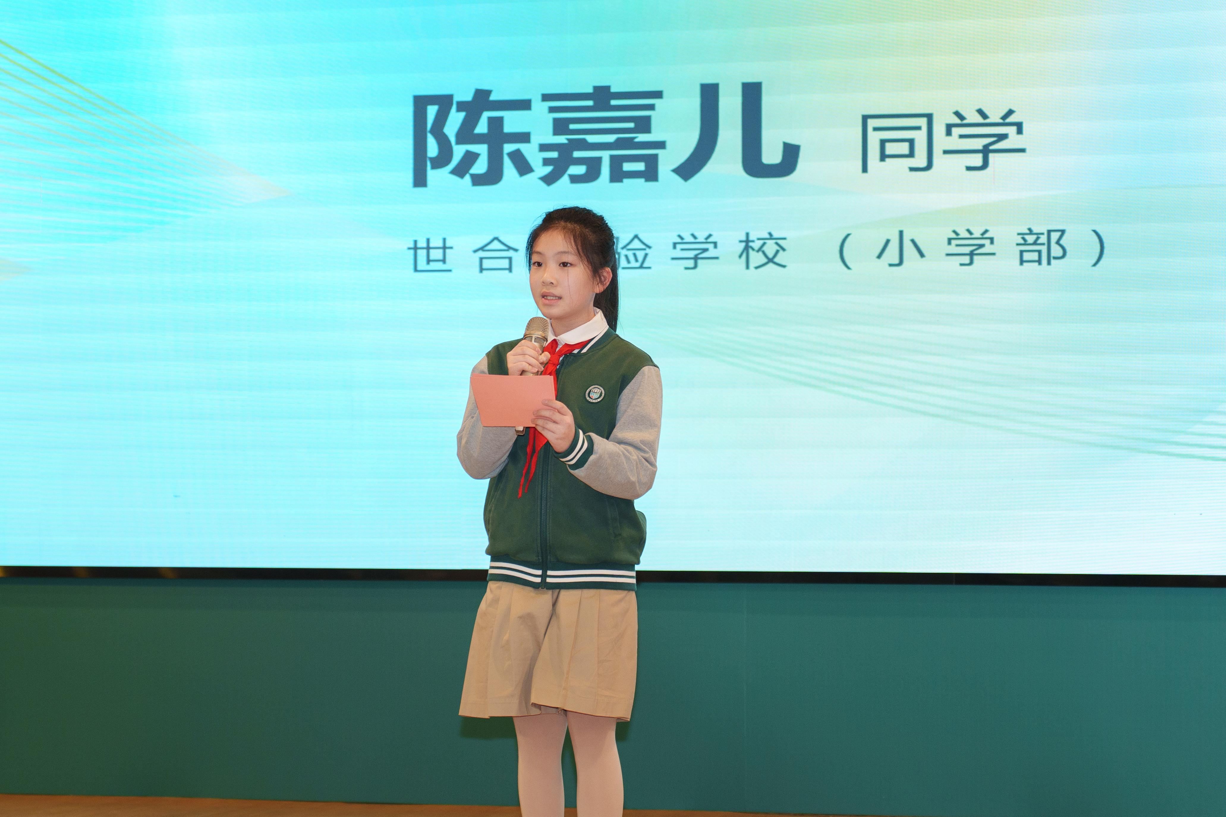 学生会主席601班陈嘉儿同学分享了在世合参与项目化学习、话剧表演、学生会主席竞选等活动中的成长感悟,字里行间满是对校园的热爱。