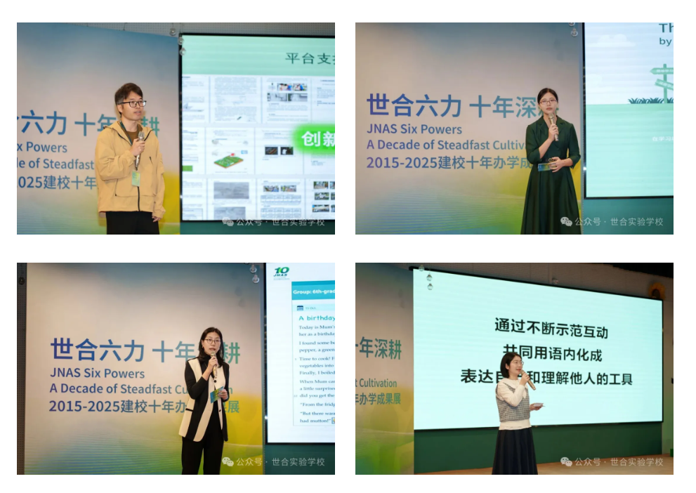 学务处主任沈丹萍聚焦“品格力”,讲述如何通过爱国教育、服务实践唤醒学生的责任与担当。语文教师王欣以“阅读力” 为主题,分享全阅读模式如何帮助孩子搭建“对话世界的起点”。数学教师谭妍雨解锁“学习力”培养密码,用数学教学案例展现从“被动接受”到“主动创造”的转变。信息科技教师王佳哲以“创新力”为主题,分享“让 AI 为孩子赋能”的探索,呈现科技与教育的融合。