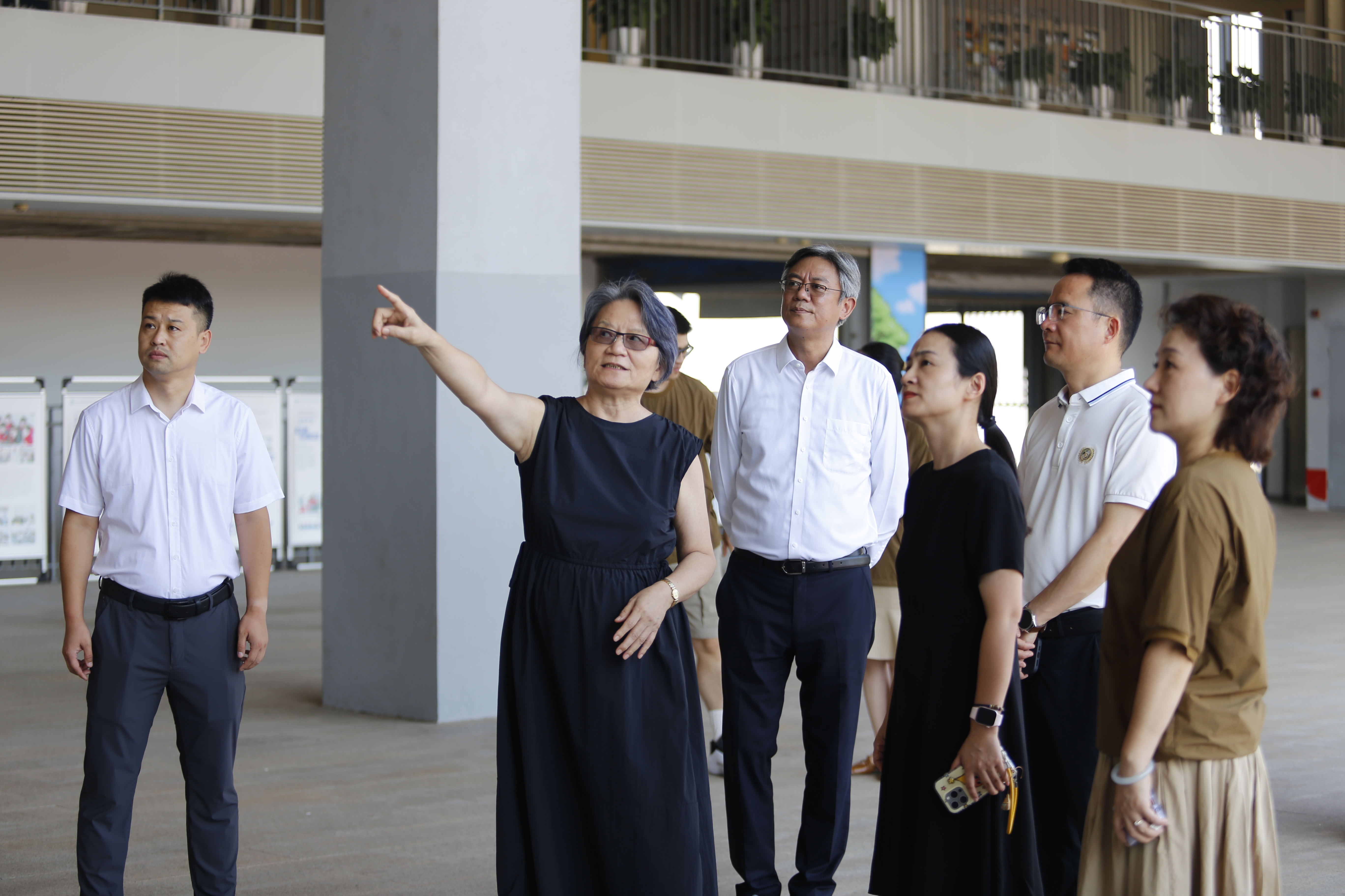 在世合公司总经理蔡剑民、教育总监丁亚雯、学校党总支书记卜海峰和校长王文等陪同下,局领导一行参观了校园,实地走访了普通教室、功能教室、食堂、体育馆、报告厅、图书馆及公共学习空间等场所。金静局长对学校优美的环境和现代化设施表示赞赏,尤其对学校在课程体系构建与全方位育人生态营造方面取得的斐然成果与匠心实践给予了高度肯定。