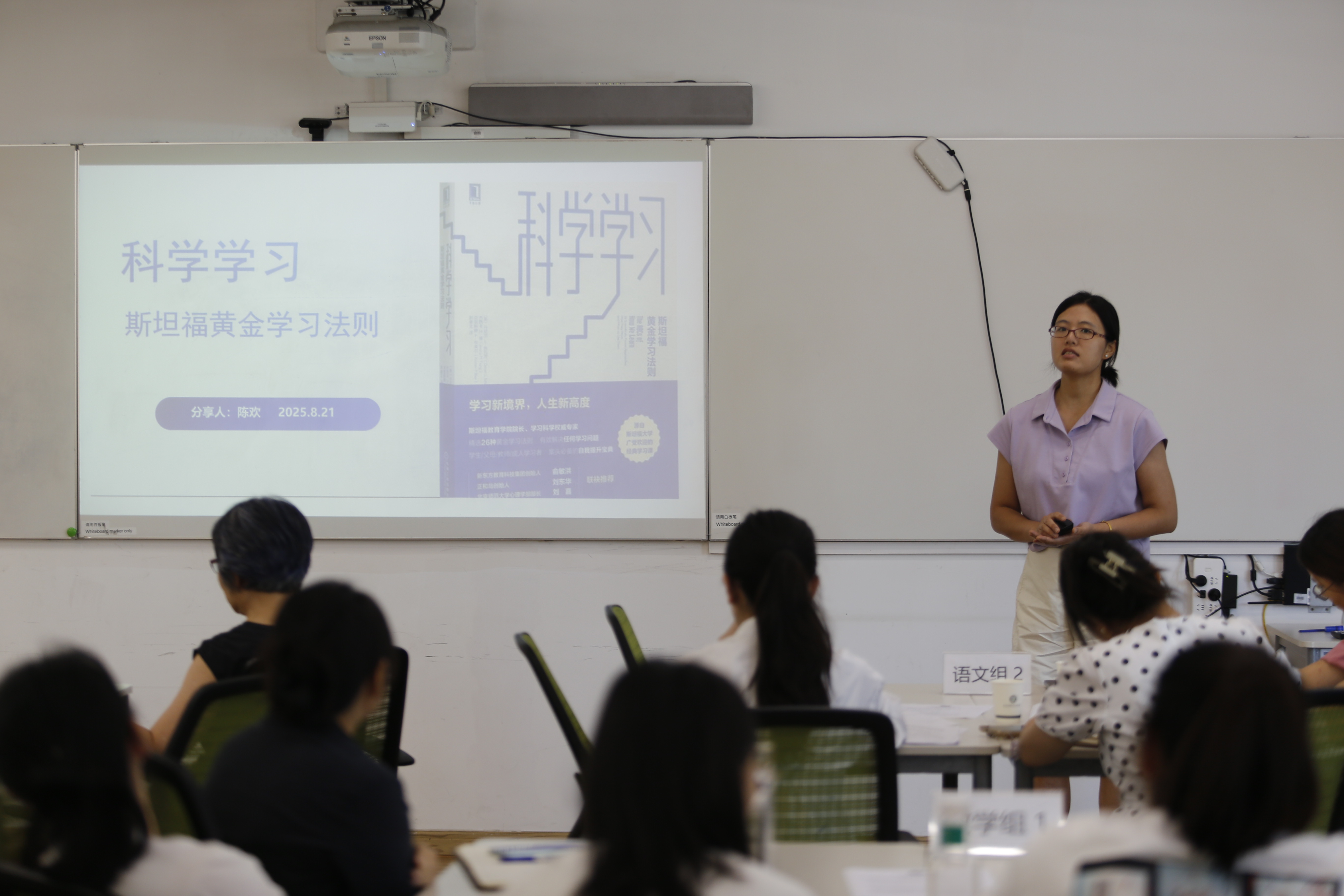 陈欢老师分享了《科学学习 —— 斯坦福黄金学习法则》的研读感悟,从 “归纳类比(Analogy)” 帮助学生发现知识共通原理,到 “动手创造(Making)” 让学习在实践中落地,到“归属感(Belonging)” 缓解学习者焦虑 —— 每一种法则都配有原理解析、正反案例与应用误区,让抽象的理论变得可操作。 老师们计划将这些策略融入新学期课堂,让学生从 “被动接收” 转向 “主动建构”。
