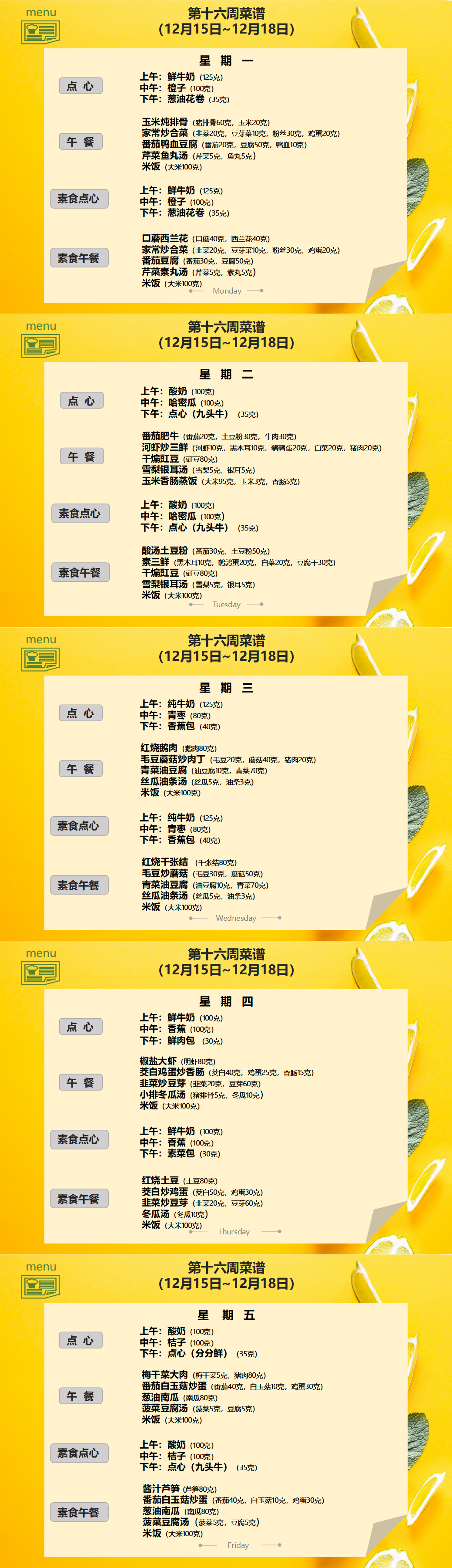 嘉兴市南湖区世合实验学校第十六周营养菜谱