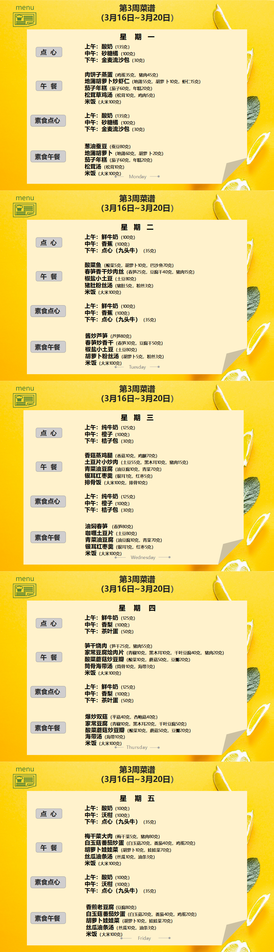 嘉兴市南湖区世合实验学校第三周营养菜谱