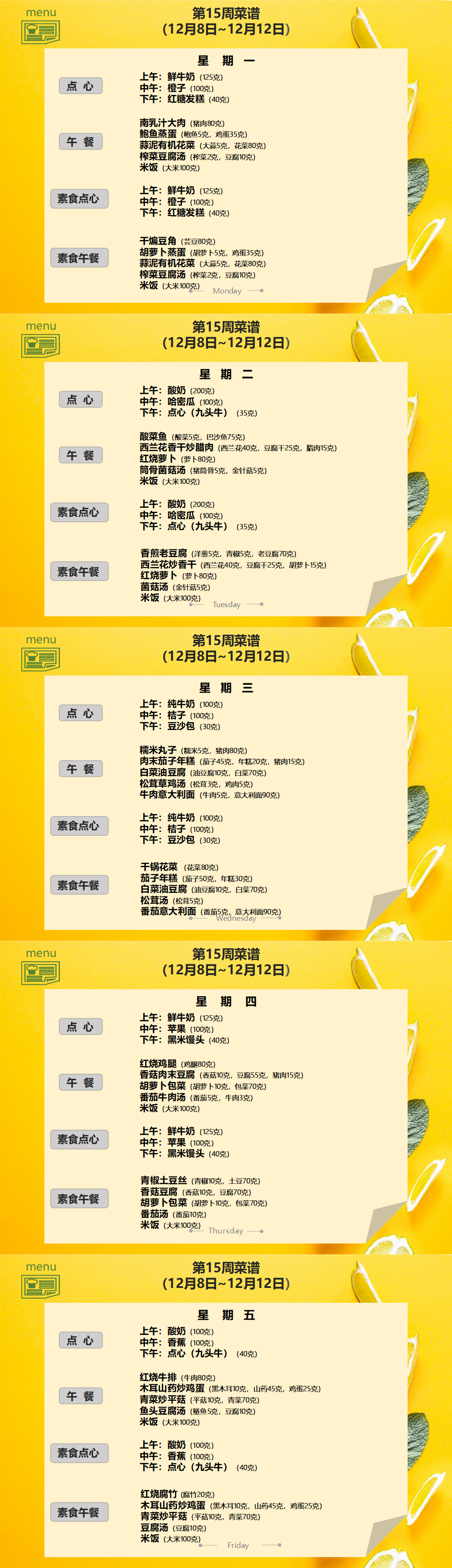 嘉兴市南湖区世合实验学校第十五周营养菜谱