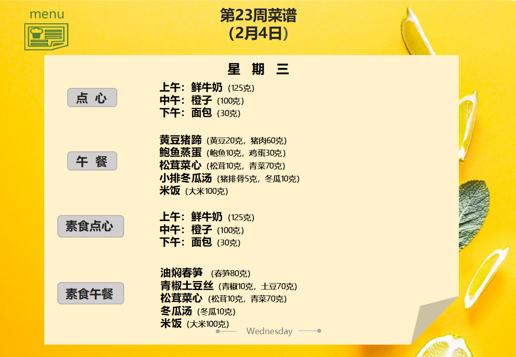 嘉兴市南湖区世合实验学校第二十三周营养菜谱